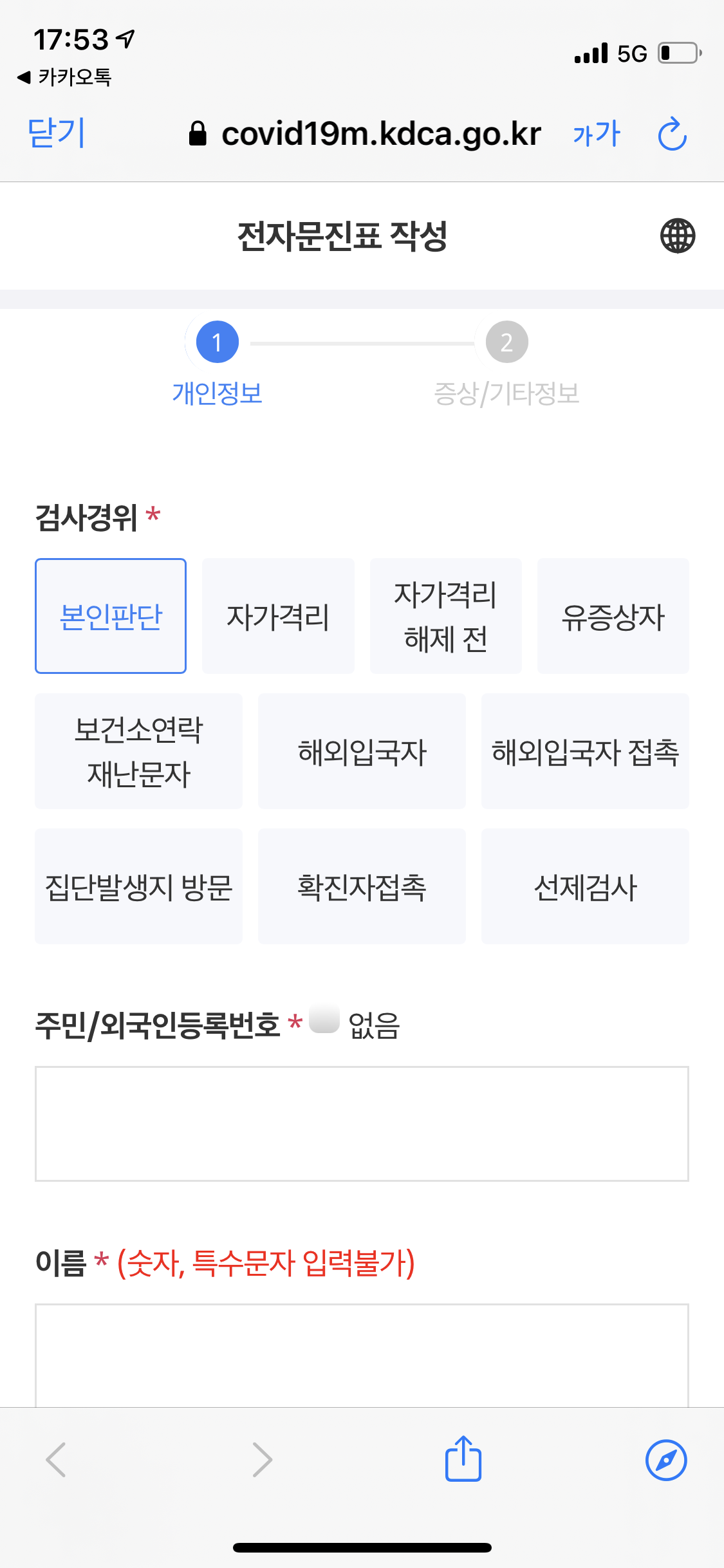 각자 상황에 맞는 검사경위를 클릭해주시면 돼요.