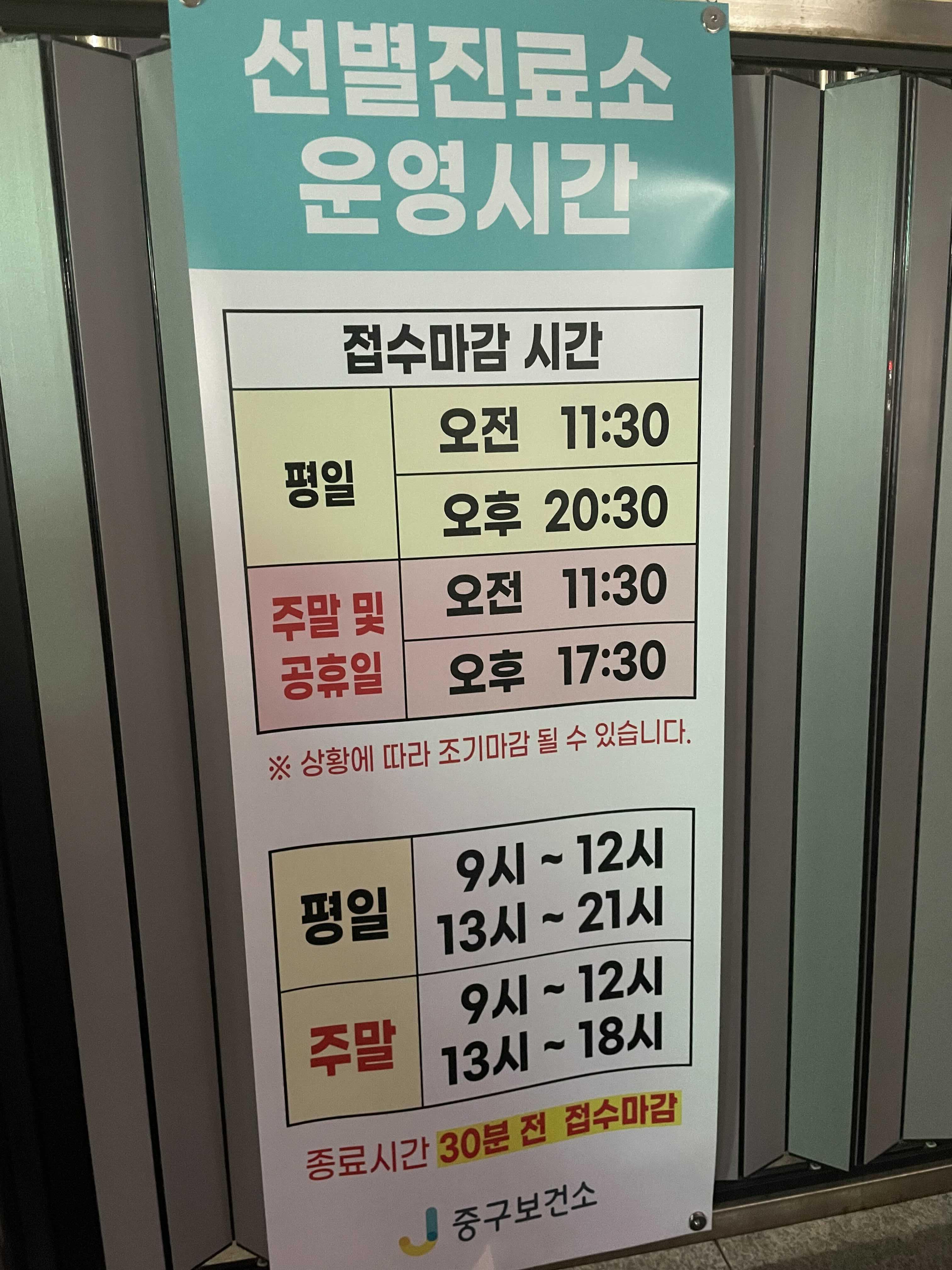 🅾️ 신당동 중구보건소 선별진료소 운영시간 🅾️