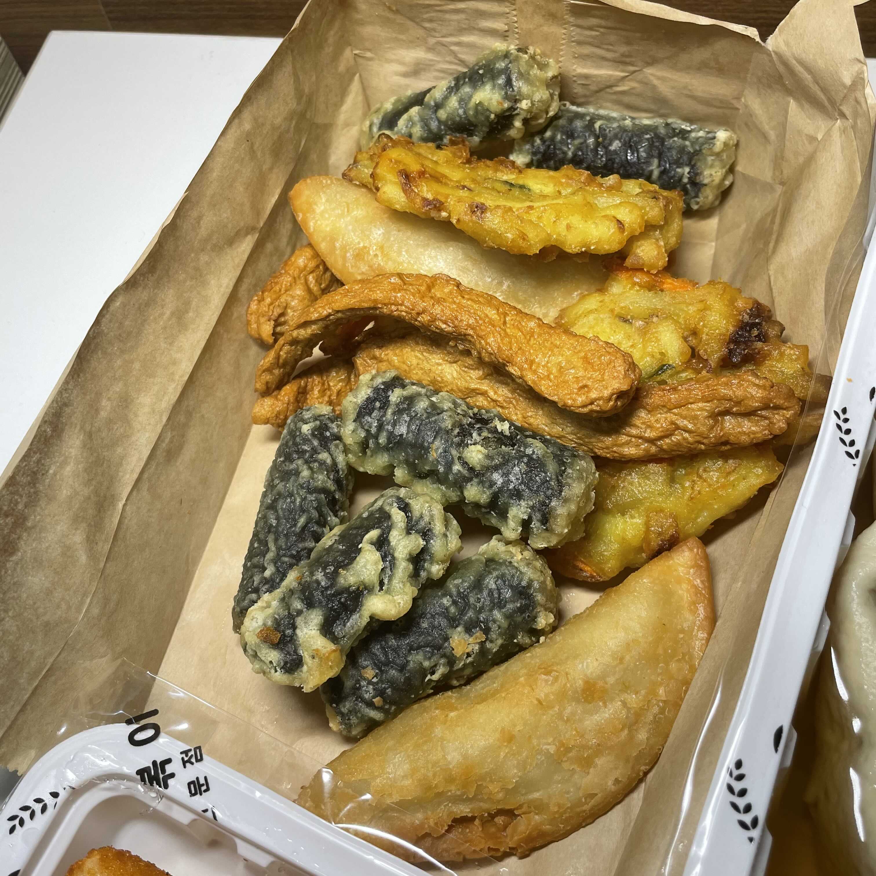 전체적으로 기본을 지켜서 맛있던 (?) 맛이었어요. 속이 꽉 차있던 것도 특출났던 것도 아니었지만 아무튼 맛있었어요. 개인적으로 야채튀김이 제일 맛있었고, 그 다음이 김말이, 만두, 어묵순이었어요.