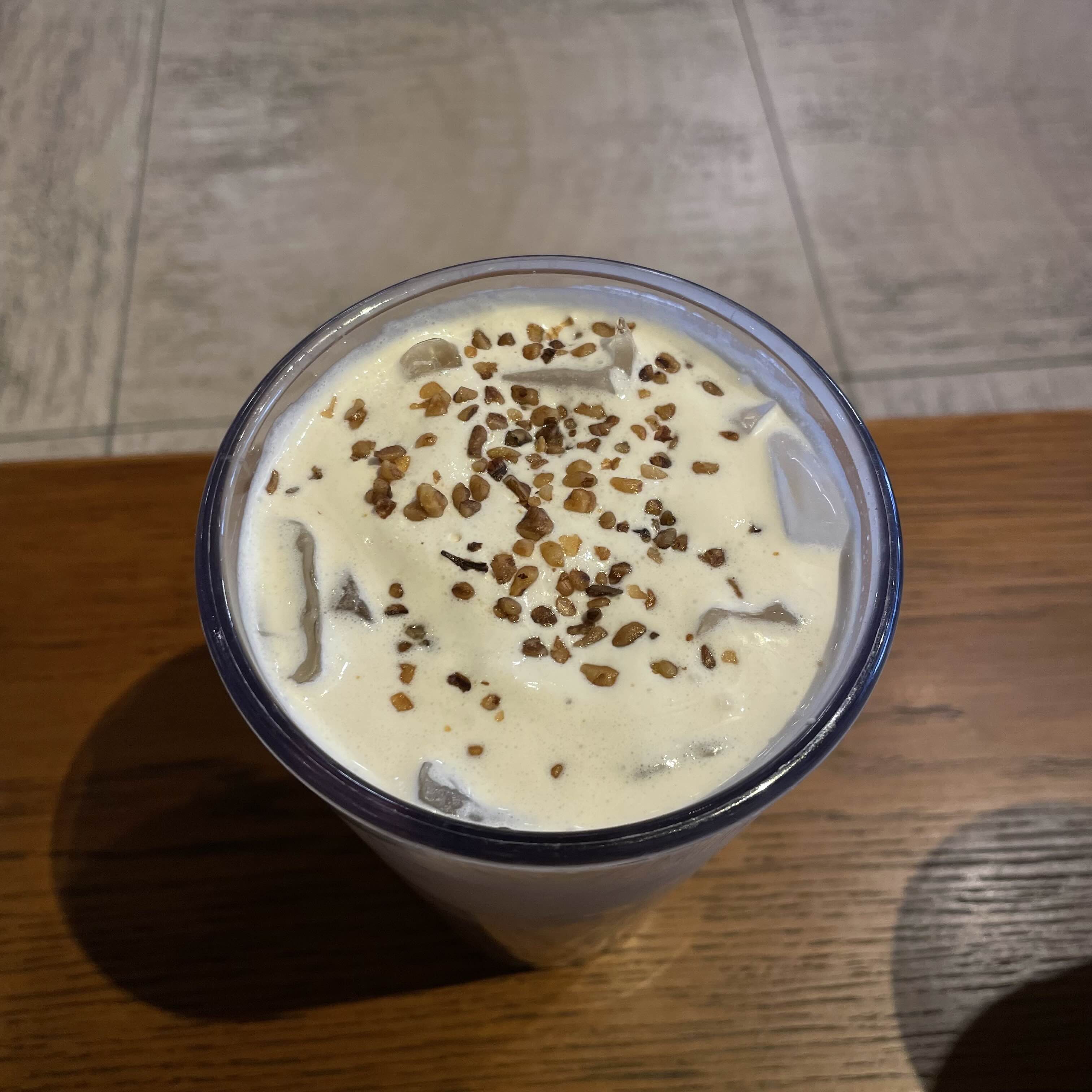 먼저 호두블랙틸라떼 솔직 후기에요. 음료를 마시면 중간중간 호두알이 씹혀서 그 식감이 참 좋았어요.